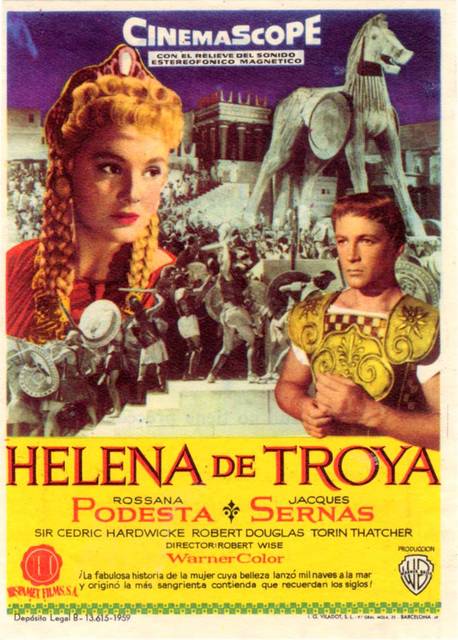 Hoy vamos a hablar de «Helena de Troya», partiendo de la base de que siempre me ha resultado curioso que las versiones cinematográficas de la guerra de Troya optaran por eliminar lo más divertido de aquella historia, que, por supuesto, era la intervención de los dioses: desde los enfados de unos a los caprichos de otras o las ayuditas a aquél que les cayera mejor pero, en suma la traslación al conflicto de las fobias tan poco divinas que tenían entre ellos, aquellas divinidades del Olimpo tan poco ejemplares.