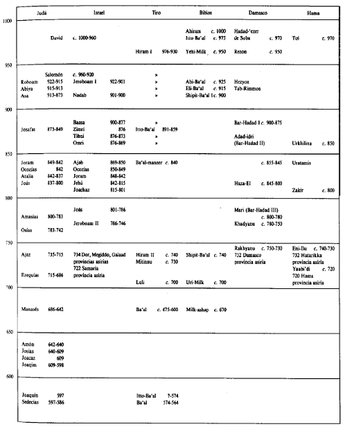 Cronologías de la región siropalestina en la primera mitad del primer milenio a.C. (Fuente: Liverani, 2012)