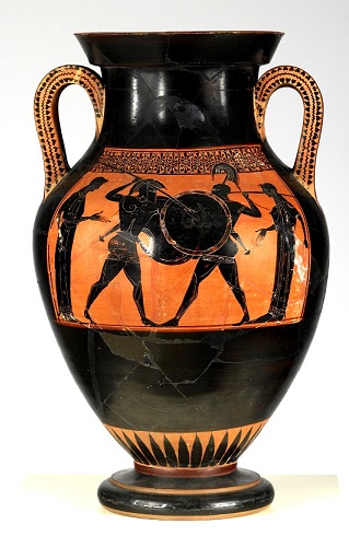 Pieza cerámica de figuras negras de finales del siglo VI a.C., muestra del arte de la Grecia arcaica