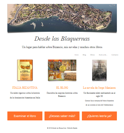 Una de las cosas que más me gustan de Internet es que, como es prácticamente infinito, nunca te dejará de sorprender, dándote a conocer muy buenas webs históricas desconocidas hasta el momento. Este es el caso de Desde las Blaquernas, una de los pocas, si no la única, webs de temática bizantina que he tenido el honor de recomendar en esta web. Licenciado en Geografía e Historia, experto en la aplicación de las TIC en la educación, y escritor de varias novelas históricas, Roberto Zapata es el ilustre autor de esta página que combina tan bien la divulgación con la amenidad.
