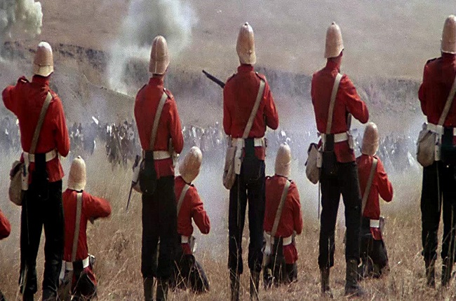 El final es conocido, así que no hay spoiler: después de tres horas de lucha, 1.300 británicos y nativos auxiliares de un total de 1.700 fueron exterminados (entre ellos 52 oficiales, más que en Waterloo) a golpe de ikwla (una lanza corta manejada como espada) y ni siquiera pudo salvarse la bandera, a pesar de que Melville y Coghill huyeron con ella durante casi 13 kilómetros para ponerla a salvo (al final fueron cazados pero la bandera se perdió en el río, aunque sería encontrada esa noche). Ninguno de los personajes sobrevive excepto los de la columna del ausente Chelmsford y, de hecho, el campo de batalla quedó sembrado de cadáveres de un único bando, pues los zulúes se llevaron los de los suyos (un millar aproximadamente, aunque luego el número creció al ir muriendo muchos de los dos mil heridos).
