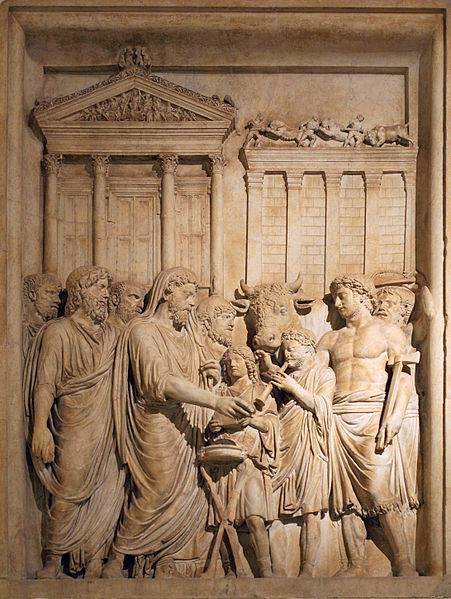 Relieve del Museo Capitolino de Roma en donde aparece el emperador Marco Aurelio con sacrificios romanos