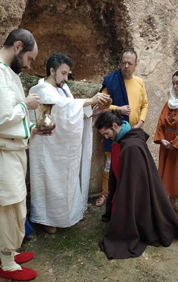 Bautismo secreto paleocristiano del s. III d.C. en una catacumba. Grupo de recreación histórica Mos Religiosvs, que también hace sacrificios romanos
