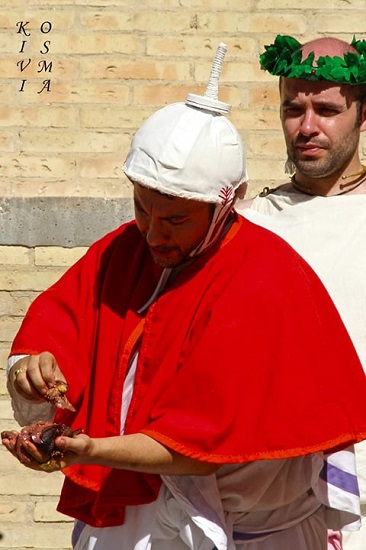 Flamen o sacerdote comprobando las entrañas del animal. Grupo de recreación histórica Mos Religiosvs.