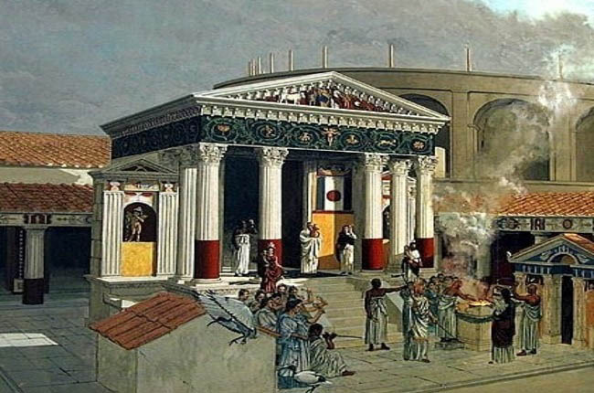 Uno de los sacrificios romanos frente al templo de Isis en Pompeya