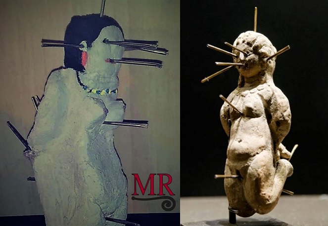 En otro lugar, por ejemplo, otra tumba lejana o un pozo, se depositaba la cajita con el muñeco de plomo. De esta forma, si alguien quería realizar una contra maldición, tendría que buscar en dos lugares distintos, exhumando todas las tumbas de todos los cementerios o buscar en pozos, para encontrar la otra parte de este puzle de la maldición.