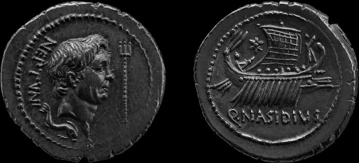 Sexto Pompeyo, hijo menor de Pompeyo Magno, tuvo una vida adulta extraordinaria. Apenas tenía diecisiete o dieciocho años cuando estalló la guerra civil que enfrentó a Julio César contra su padre y solo un año más cuando este fue asesinado en Egipto. Luego estuvo un tiempo intentando vengarlo en batallas como Tapso (46 a.C.) o Munda (45 a.C.), pero el popular siempre salió victorioso. Más tarde aprovechó la fama de su nombre y la inestabilidad política posterior al magnicidio de Julio César para hacerse poderoso en el mar gracias a una numerosa armada. Una vez que los asesinos del dictador fueron derrotados en la batalla de Filipos (42 a.C.), Sexto Pompeyo supo que había llegado su destino: el heredero de Pompeyo Magno y el heredero de Julio César lucharían a muerte por el control del Mediterráneo Occidental.