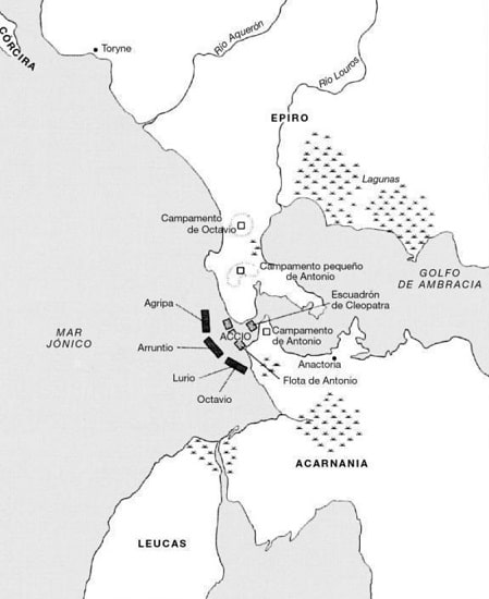 La batalla de Accio en el mapa