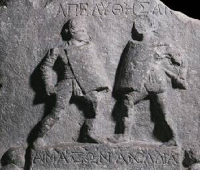 Relieve de Halicarnaso en el que se ve a dos gladiadoras, Aquilia y Amazona